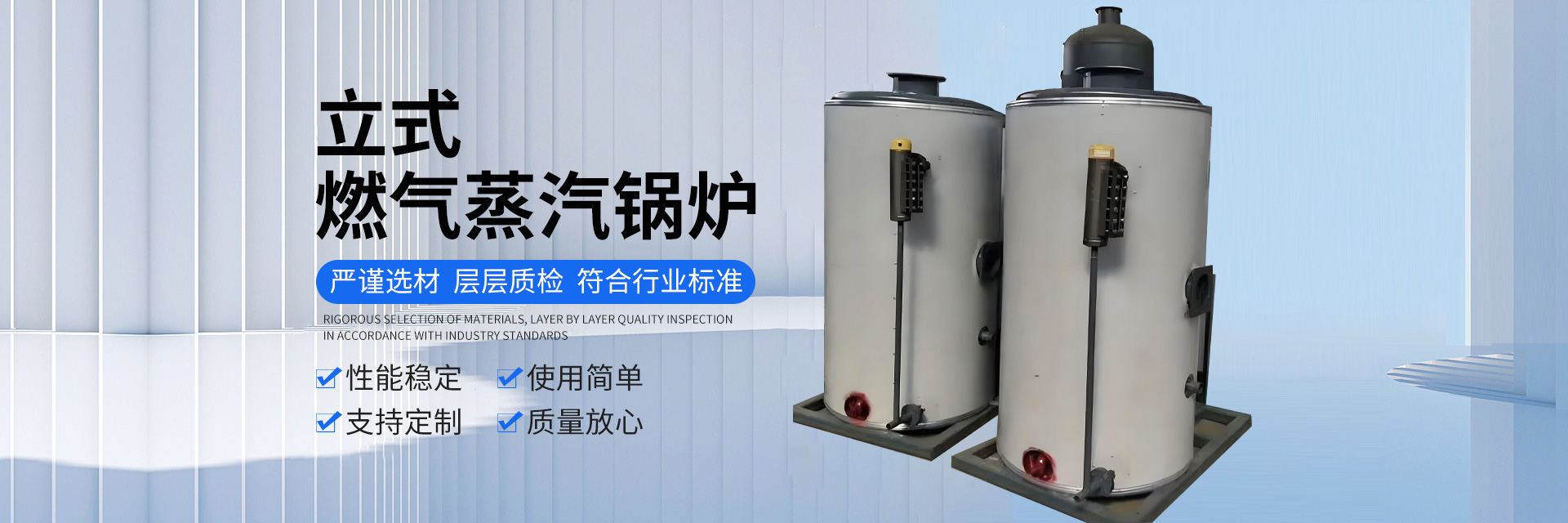 產(chǎn)品有燃氣蒸汽發(fā)生器、生物質(zhì)蒸汽發(fā)生器、電加熱蒸汽發(fā)生器、熱風爐、燃油蒸汽發(fā)生器,鍋爐輔機,模溫機,浴室專用熱水鍋爐,養(yǎng)殖鍋爐等。產(chǎn)品豐富多樣化,廣泛用于服裝紡織行業(yè)、食品加工行業(yè)、包裝機械、電鍍化工、橋梁鐵路養(yǎng)護、木板竹制品加工、賓館酒店。產(chǎn)品遠銷國內(nèi)外市場,深受廣大用戶的歡迎。